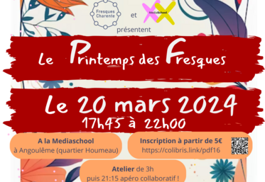 Un collectif d'associations charentaises organise le 20 mars à la Mediaschool à Angoulême le Printemps des fresques, pour…