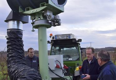 La lutte contre le gel dans les vignes donne lieu à des innovations. Une démonstration du système Ventigel, alliant ventilation…