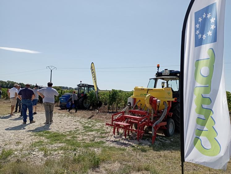 La fédération des Cuma des Charentes a organisé une démonstration de semoirs de couverts végétaux en viticulture, à Saint-Germain-de-Lusignan.