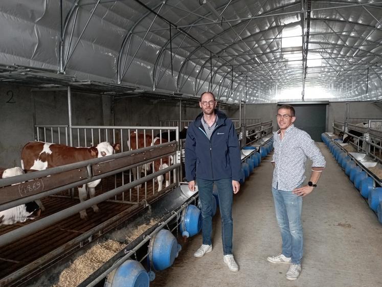 La création de son entreprise individuelle a été rapide, tout comme la réalisation du contrat avec Denkavit. Il découvre " les joies" de l'administration pour le PCAE, les aides à l'installation, … Lorsqu'il a débuté les démarches pour l'ICPE, le permis de construire, le financement, les choses ont été plus compliquées. Les rendez-vous se sont succédé avec différentes banques. L'élevage de veaux est une filière méconnue pour les banques, contrairement à la viticulture ou les céréales. "C'était une épreuve pour moi " confie Mehdi Girard qui a eu " envie de baisser les bras ". Sa patience et sa détermination ont été aussi mises à rude épreuve avec le notaire, lorsqu'il a découvert que depuis 2021, deux études de sol sont obligatoires lors de la construction d'un bâtiment. Tout cela a eu pour effet de retarder son installation. "Chaque pas administratif était un obstacle " analyse-t-il avec le recul. À cela s'ajoutent la guerre en Ukraine, l'inflation, le coût des matériaux. " J'ai eu des entreprises très professionnelles. Les augmentations ont été minimes par rapport à ce que j'aurai dû supporter. " Cette reconnaissance est aussi envers Denkavit, qui travaille régulièrement avec ces entrepreneurs. " Ils ont su faire un geste pour Mehdi, pour que son projet se réalise. C'est la force de notre partenariat " explique le technicien.