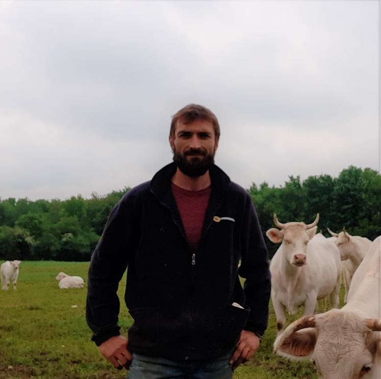 Après une année de césure en Amérique du Sud et la naissance de son fils, il est prêt à s’installer à 31 ans. Au 1er janvier 2020, un cousin éloigné lui cède la ferme dont il est tombé amoureux, située à Valdelaume (près de Chef-Boutonne), avec 50 ha de céréales et prairies et 31 Charolaises.