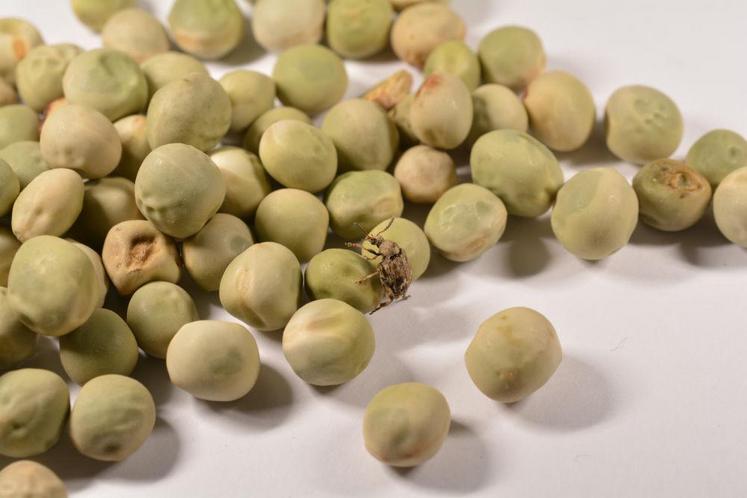 S’il est un insecte qui pose problème au silo, c’est bien la bruche. Au moment de sa floraison, elle pond dans les lentilles, pois ou féveroles (une espèce spécifique par culture). Sa larve se développe dans les graines des protéagineux et sort, adulte, au moment de la récolte ou du stockage. Si elle s’échappe du silo, elle risque alors d’infester les champs aux alentours. En agriculture biologique, ou pour les labels sans insecticides, il n’existe pas de solution pour éliminer le ravageur.