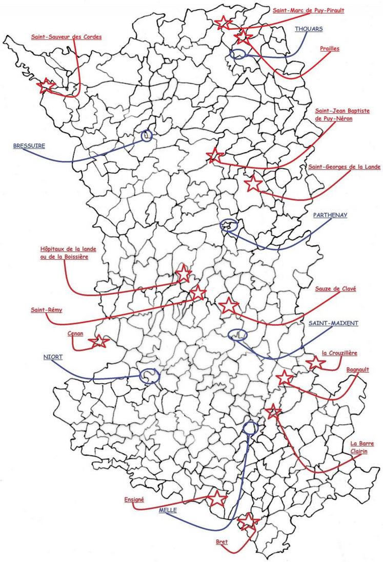 Le Poitou est particulièrement bien pourvu, du fait de son appartenance à la province templière d’Aquitaine, qui couvre une bonne partie de la façade atlantique. Pascal Desbois, un amoureux de l’histoire, travaille depuis vingt ans au recensement des bâtiments templiers dans les Deux-Sèvres. Ses recherches lui ont permis d’en recenser quatorze (voir carte).