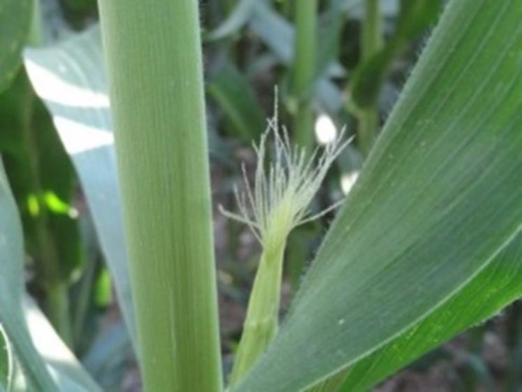 Le stade «floraison» pour le maïs, c’est la floraison femelle. Ce stade correspond à l’apparition des soies à la pointe des épis et n’est donc pas visible de l’extérieur de la parcelle. Petite astuce, ce stade arrive 8 à 10 jours après la sortie des panicules au sommet des plantes, phénomène bien visible depuis le bord du champ. Noter la date de floraison aide les éleveurs, les Cuma et les entrepreneurs à planifier les récoltes et donc à améliorer la qualité des ensilages pour les élevages.