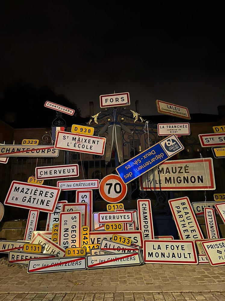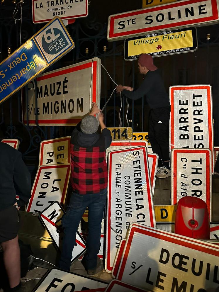 JA 79 a décroché plusieurs panneaux de communes, une façon d'illustrer le manque de direction claire pour l'agriculture.