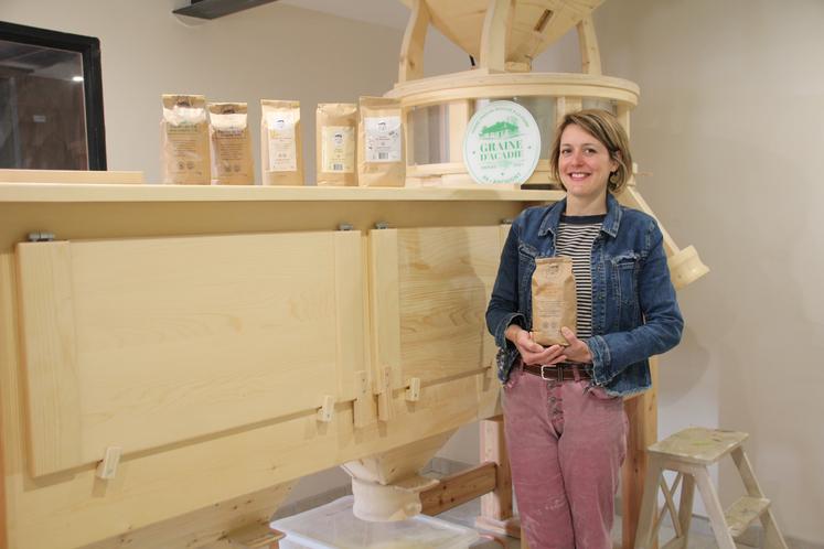 Cloé Neveu, salariée du Gaec de Benoît (son mari) et Philippe Neveu (élevage de Limousines et grandes cultures), transforment sur leur exploitation des cultures produites sur l’exploitation, en farine.