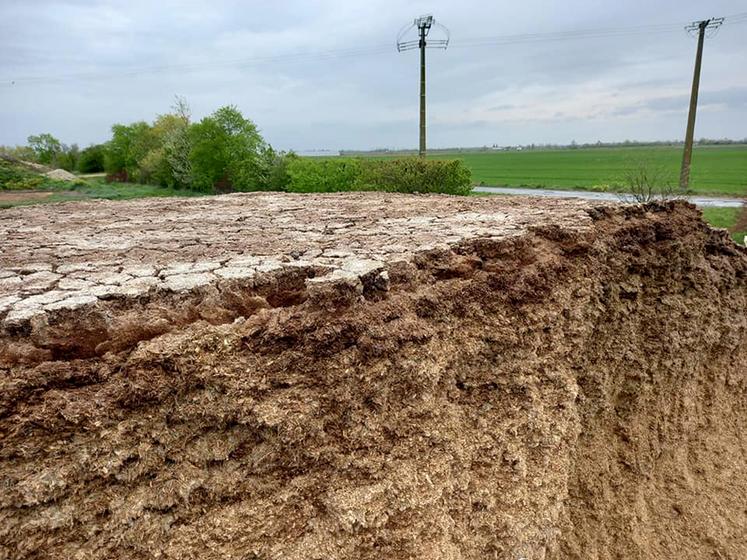 La société France AliPlus a présenté mi-mai à Marans un essai de stockage de maïs sans bâche, grâce à une couche de céréales mélangées à son complément alimentaire. Les premiers résultats sont intéressants.
