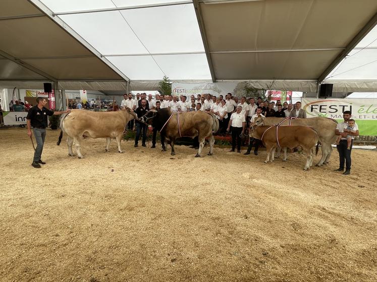 Le Gaec Maison Guillemet, de Lys Haut Layon (49), réalise une remarquable performance, puisqu’il revient avec pas moins de cinq prix spéciaux : le championnat génisses, le championnat vaches gestantes, le prix de famille par la mère, le prix de famille par le père, et le prix d’ensemble. Pour ce dernier prix, le juge parthenais a salué « des vaches qui expriment au maximum leur développement musculaire, des animaux fins et très bien racés ».