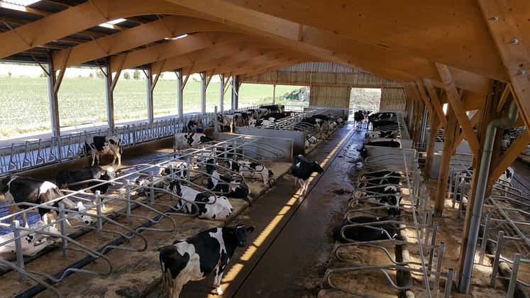« Nous avons décidé de développer notre production laitière et de moderniser les bâtiments, raconte Gérard Courcoul, l’un des six associés du Gaec. Nous avons conservé les anciens bâtiments pour l’hivernage et construit trois nouveaux : une nurserie, un bâtiment pour les vaches en préparation vêlage, et un autre de 3 600 m2 pouvant accueillir jusqu’à 200 vaches laitières ». Et c’est ici que se concentrent les innovations. À commencer par ce matelas logette à poche d’eau climatisée par système rafraîchissant.