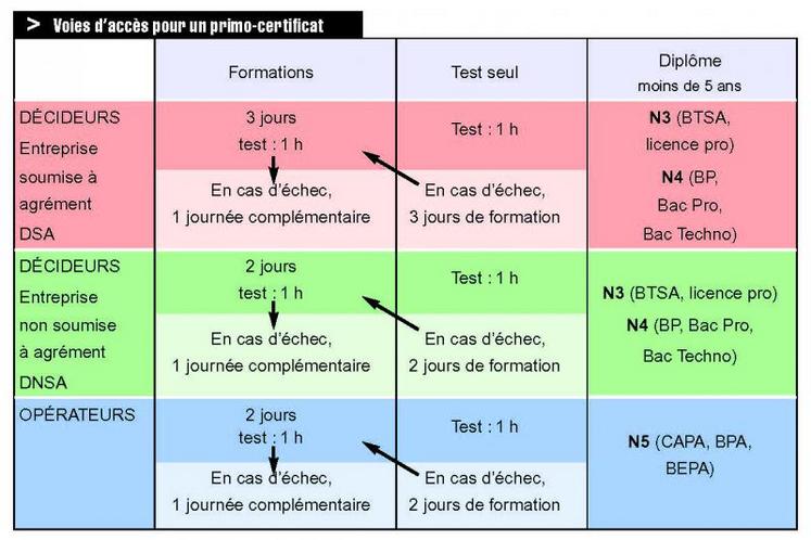 La détention du certificat correspondant à son activité est obligatoire depuis le 1er octobre 2013 pour les entreprises soumises à agrément et depuis le 26 novembre 2015 pour les autres secteurs. Sa durée de validité dans le nouveau dispositif est de cinq ans pour l’ensemble des certificats. Les Certiphytos délivrés dans l’ancien dispositif avec une durée de validité de dix ans restent valables jusqu’à la date indiquée.