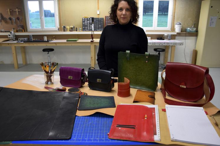 Au cœur de la campagne montbronnaise, Rebecca Larapidie a trouvé le lieu idéal pour développer son atelier de maroquinerie. Elle a aménagé une ancienne porcherie de l’élevage familial (bovin et porcin). C’est ici qu’elle découpe, pique, coud, teint. Créative, manuelle, la jeune femme s’est lancée dans ce métier il y a cinq ans. Elle était auparavant comptable au sein de l’entreprise Laubuge, à Mornac. Déjà, chez le fabricant de chaussures, Rebecca était intéressée par l’atelier : « J’ai eu un véritable coup de cœur pour le travail du cuir. J’ai ensuite appris auprès de plusieurs artisans, diverses techniques ». Elle démarre son activité chez elle en 2018, dans une petite pièce, sans aucune machine. Elle façonne des pièces de maroquinerie. « Je me suis vite retrouvée à l’étroit. J’ai alors aménagé un mobile-home. J’ai acheté ma première machine à coudre ». Elle manque encore vite de place, et a besoin d’espace pour recevoir les clients.