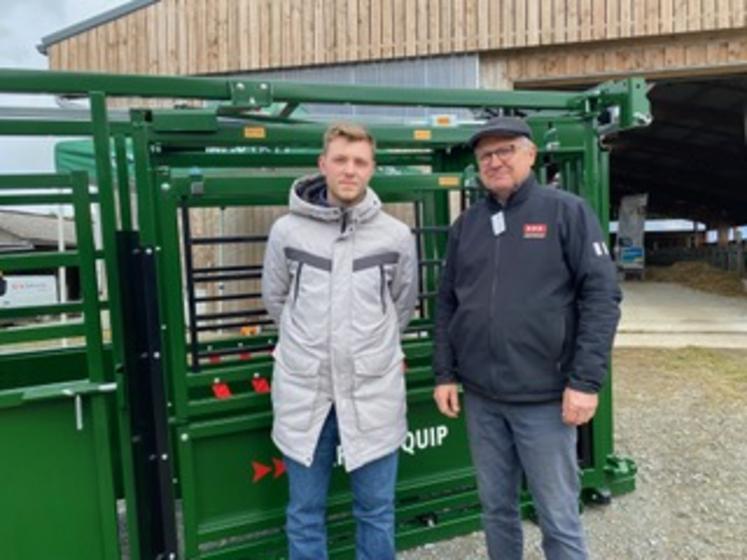 « On voit trop d’accidents avec la manipulation des animaux ». David Wilhelm et son neveu Tom, marchands de bestiaux et éleveurs bovins à La Boissière-en-Gâtine, s’intéressent de près aux cages de contention.