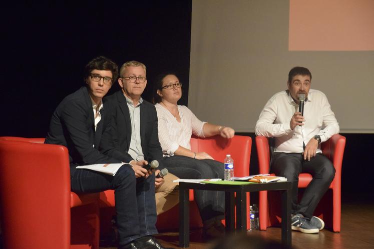 De gauche à droite : Bastien Brusaferro (directeur de l’UGVC) , Vincent Lang (Station viticole), Claire Grosbellet (BNIC), Anthony Brun (président de l’UGVC).