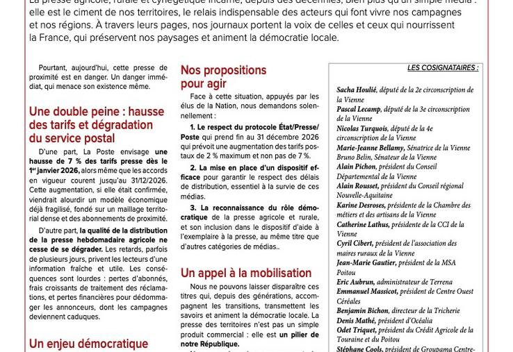 Cette semaine, la Vienne Rurale publie une tribune (rédigée avec la fédération nationale de la presse…
