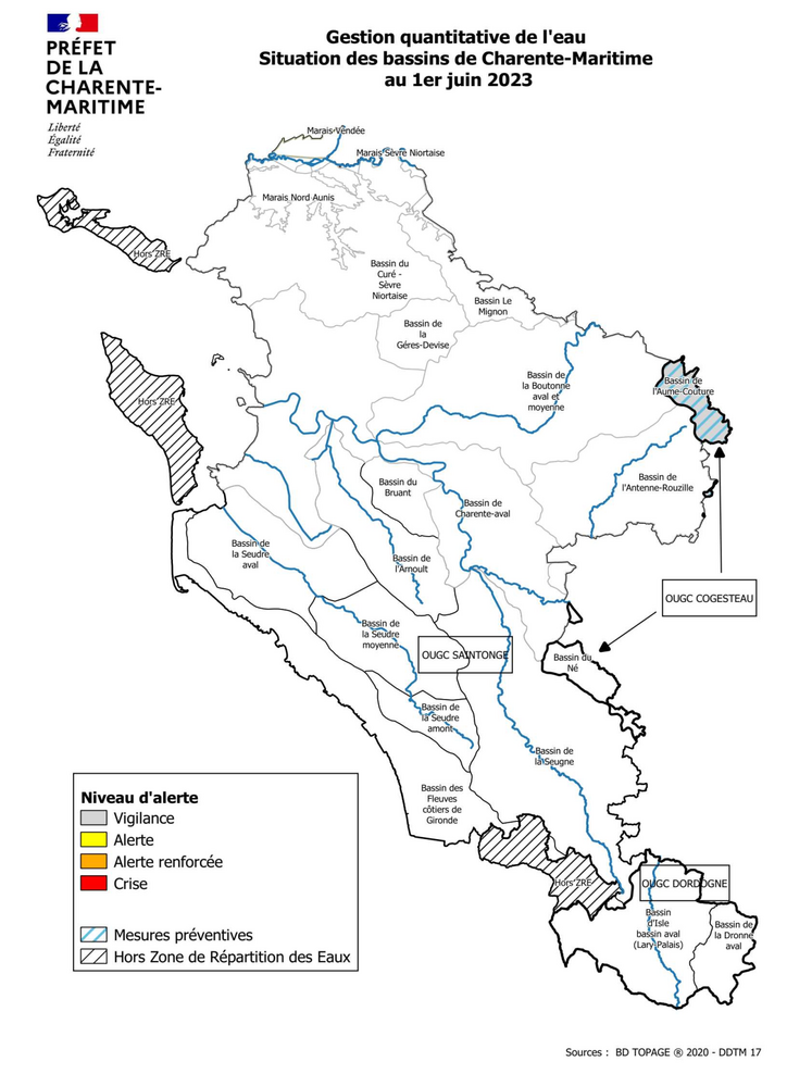 La préfecture de la Charente-Maritime a publié un nouvel arrêté concernant la gestion des usages de l'eau.