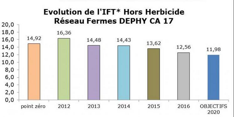 Depuis de nombreuses années, la Chambre d’agriculture de la Charente-Maritime met à disposition des viticulteurs des moyens pour raisonner et optimiser la protection de leur vignoble : formations, guide viticulture durable, bulletin individuel ou collectif, etc. Dans le cadre de l’appui aux groupes viticoles, la mise en œuvre de pratiques plus respectueuses de l’environnement a été conduite avec succès : modélisation des maladies, application des seuils de traitements, gestion du dégât acceptable, qualité de pulvérisation, gestion des déchets, etc. C’est donc naturellement que la Chambre d’agriculture s’est inscrite dans la dynamique du plan Ecophyto 2018, et a mis en place dès 2012 un réseau de fermes de références viticoles.