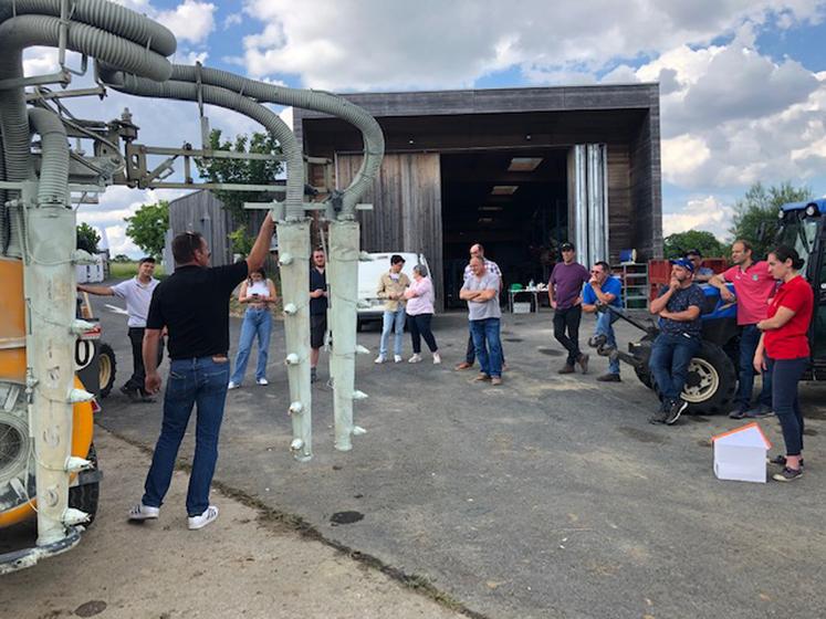 Dans un premier temps, rendez-vous avait été donné en fin d’après-midi, à plusieurs viticulteurs à Jaunay-Marigny, sur un site appartenant au négoce Ampilidae pour rappeler l’importance de la qualité de pulvérisation, et les points réglementaires sur les équipements. Sur place, Loïc Pasdois, technicien en agroéqipement, et spécialisé dans le réglage de pulvérisateurs en Gironde, a détaillé les leviers sur lesquels agir pour une bonne pulvérisation. « Le but, c’est d’avoir une couverture homogène de produit de traitement sur les faces supérieures et inférieures », insiste Loïc Pasdois. « Mais on s’aperçoit qu’on n’arrive rarement à atteindre 100 % de la feuille. Ce qu’on recherche finalement, c’est éviter les zones où il n’y a pas de produit du tout». Pour atteindre cet objectif, il est possible d’agir sur plusieurs paramètres.