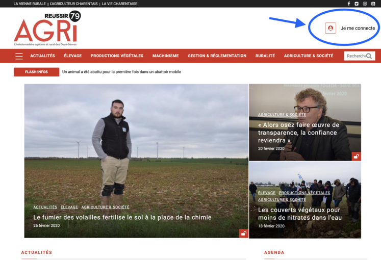 Espérant vous faire gagner du temps, je vous propose un petit tuto rédactionnel qui en quelques clics vous amènera à activer votre compte. Dès lors, vous profiterez du contenu de tous les articles travaillés par la rédaction, mais également de l’accès à la liseuse, votre Agri 79 numérique, en cliquant sur « mes revues ».